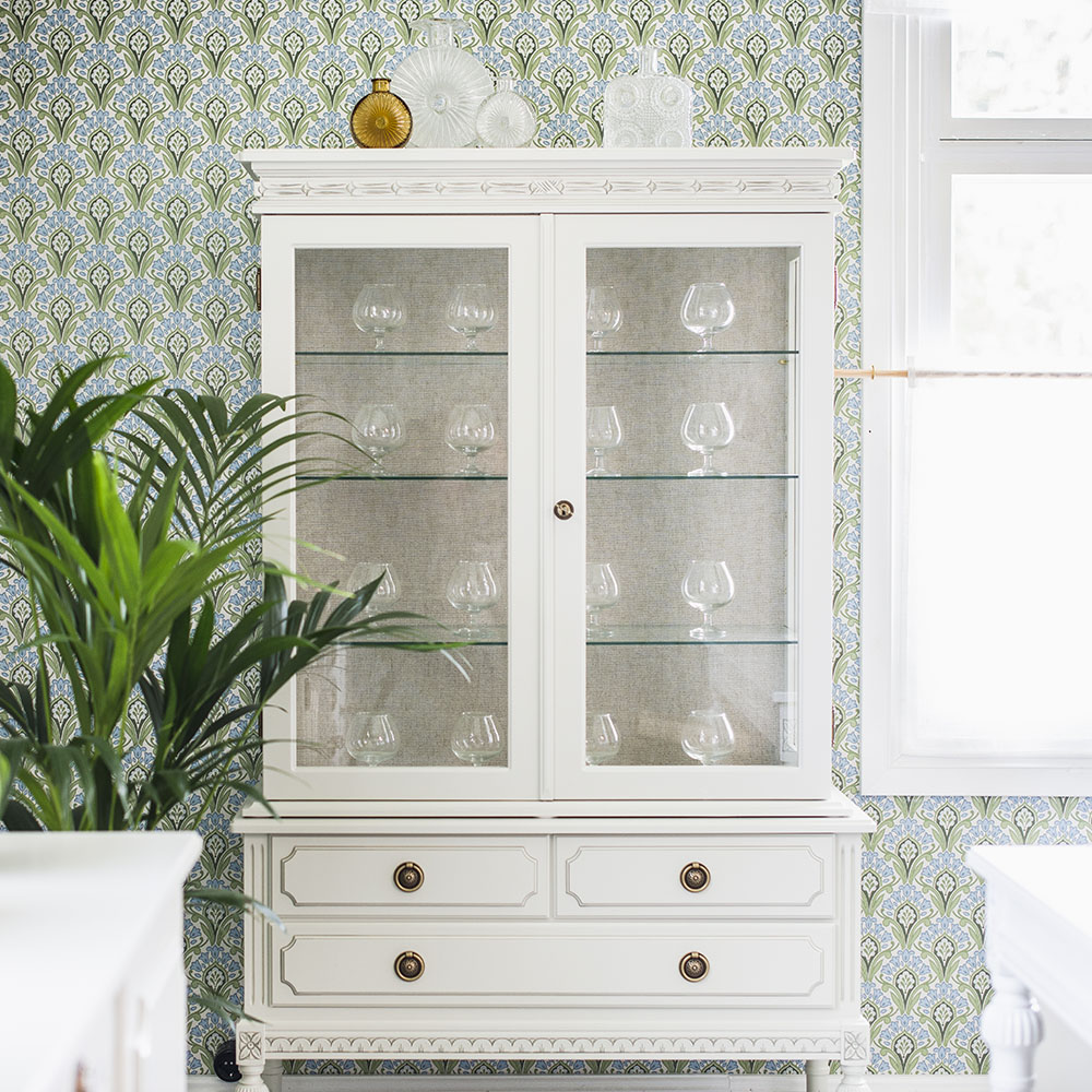 Säilytä juhla-astiasto, pöytähopeat, perintökristallit tai muut kallisarvoiset aarteesi kustavilaisessa hopeakaapissa.