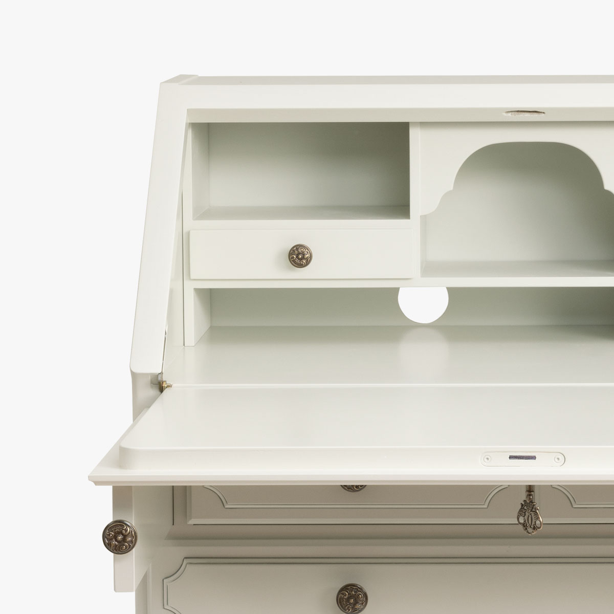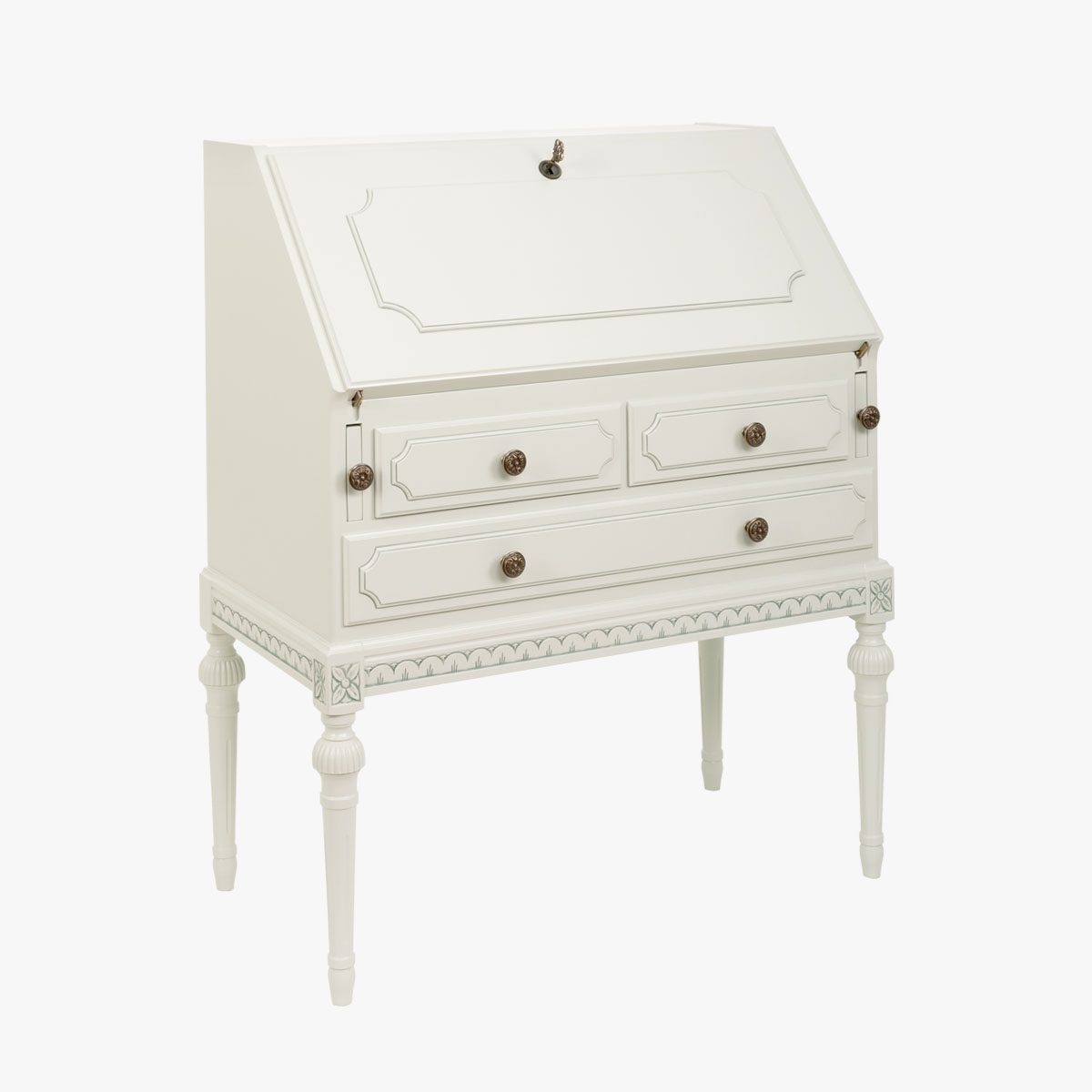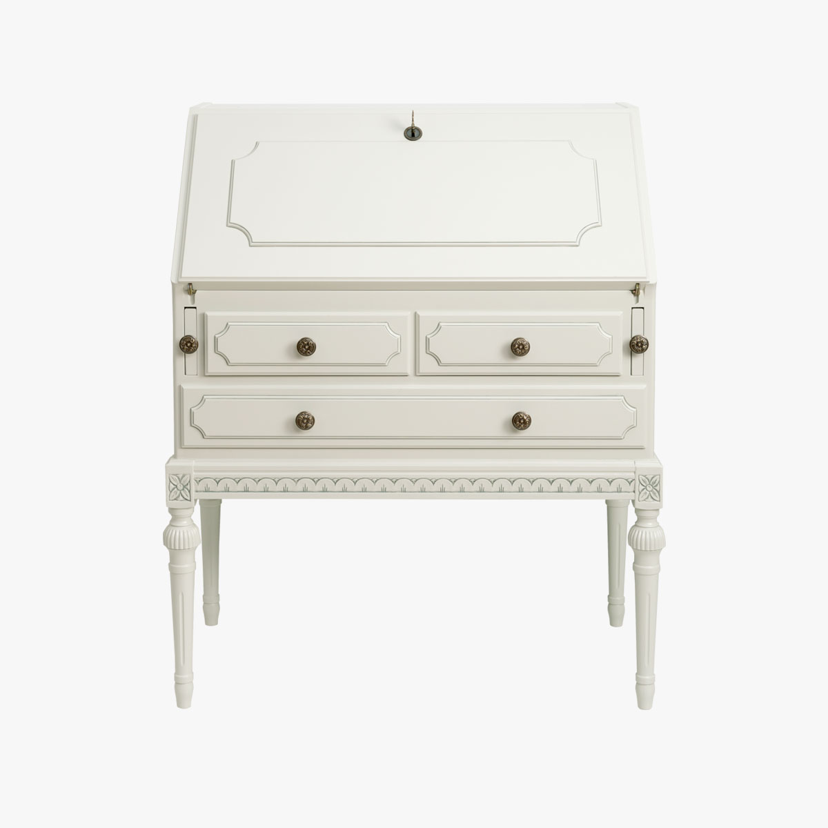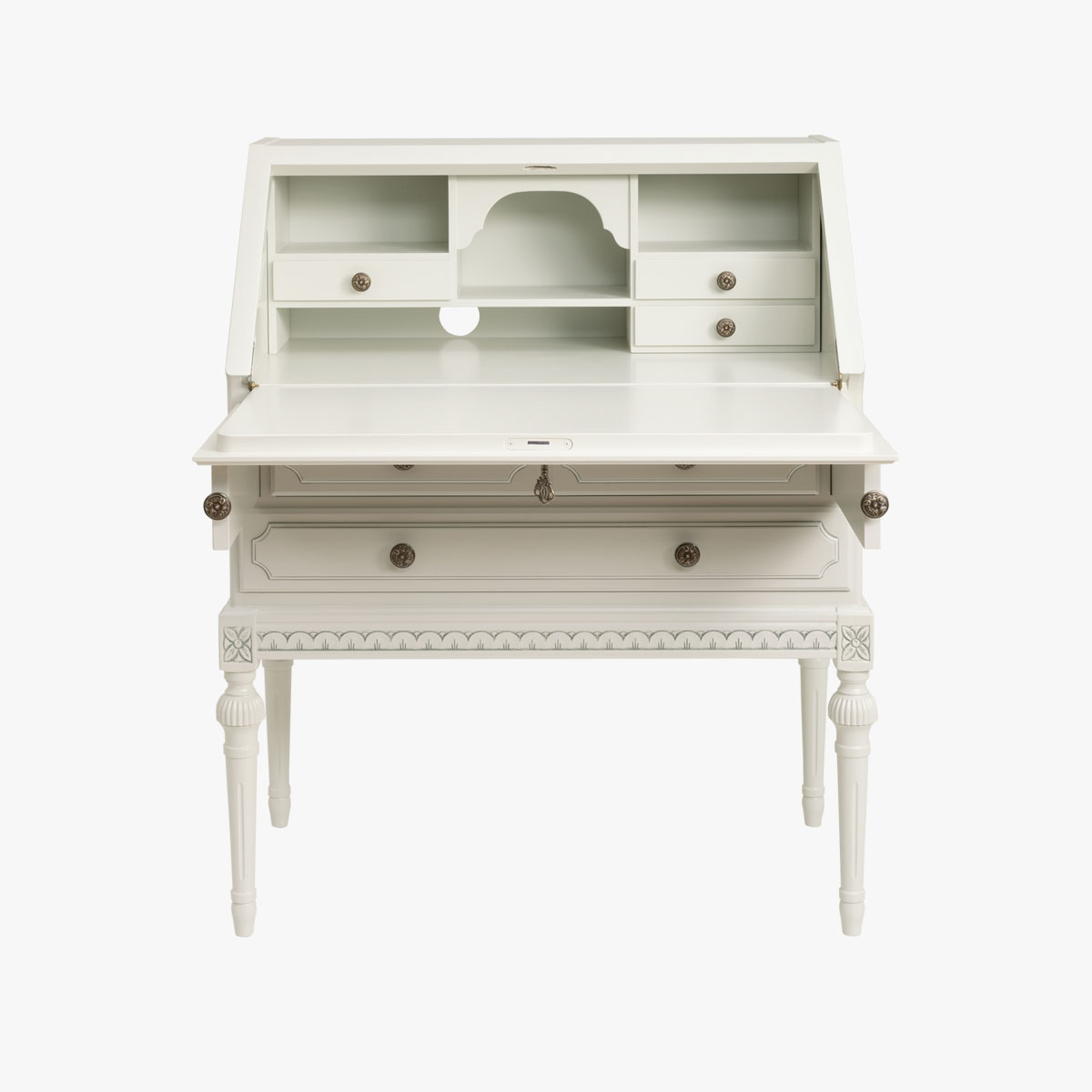 Kustavilainen kirjoituslipasto eli klaffilipasto kätkee sisäänsä säilytystilan lisäksi pienen työpisteen, joka soveltuu mainosti satunnaiseen tai lyhytaikaiseen työskentelyyn. Klaffioven sulkemalla saat piilotettua pikkuisen kotitoimiston sotkut ja paperipinot.