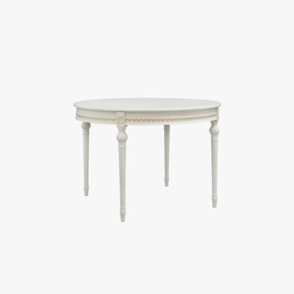 Kustavilaistyylille ovat ominaisia suorat linjat ja hillitty ornamentiikka. Kustavilaiskalusteet ovat alun alkaen olleet väritykseltään vaaleita, useimmiten helmenharmaita, mutta saatavilla on myös muita värivaihtoehtoja. Valitse ruokapöytä omaan tyyliisi sopivassa sävyssä.