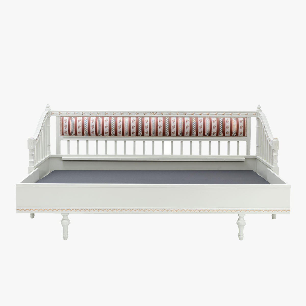 Majoita vieraasi tyylillä, kustavilaisella sivusta vedettävällä sohvasängyllä. Sijoita sohvasänky kodin olohuoneeseen, työhuoneeseen tai vierashuoneeseen. Sohvasänky toimii parhaiten lasten vierassänkynä. Sen pituus jää alle normaalin sängyn pituuden, joten useille aikuisille se on liian pieni.