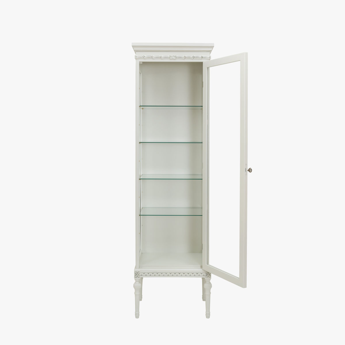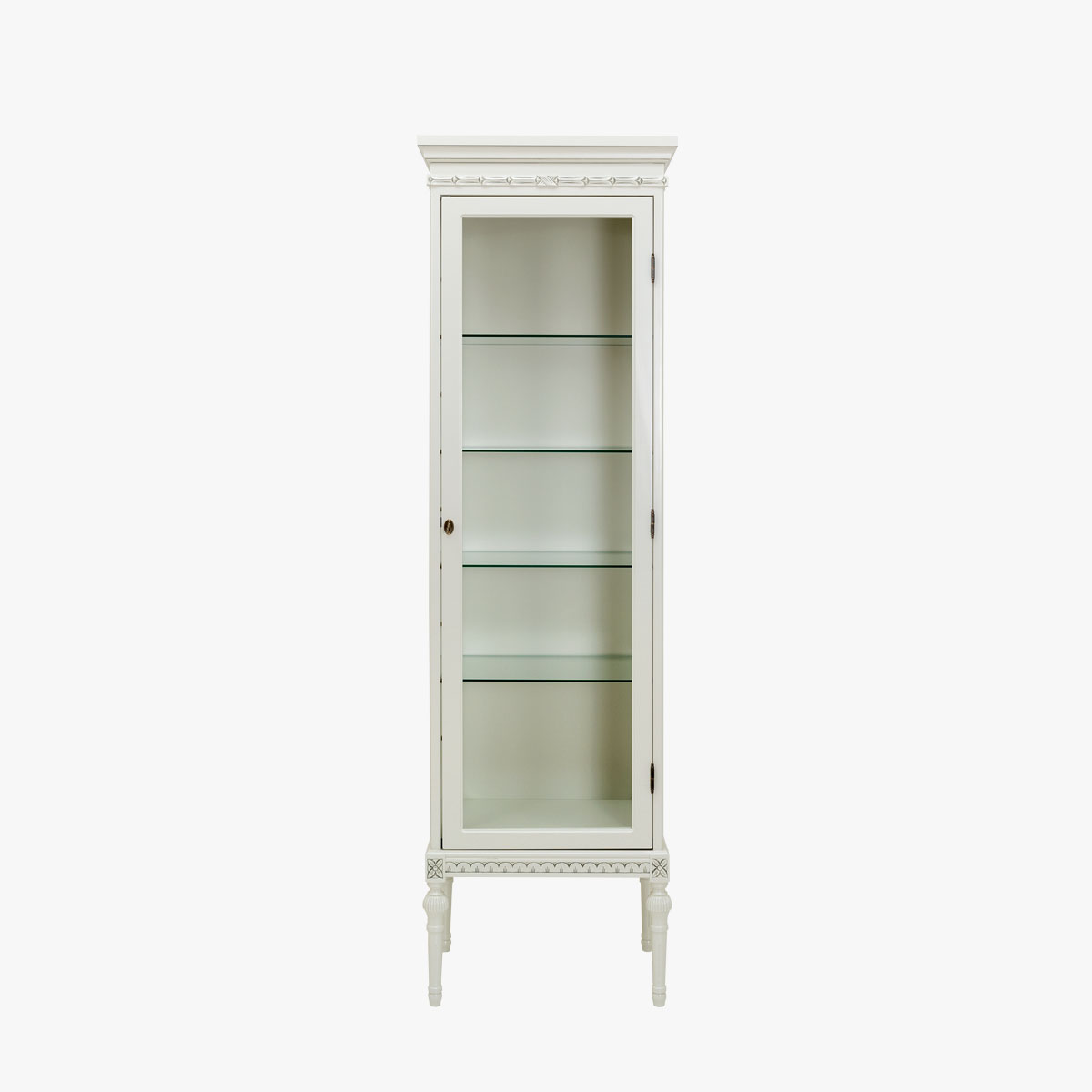 Kustavilainen vitriinikaappi on kapea ja korkea vitriini, jossa on yksi ovi.