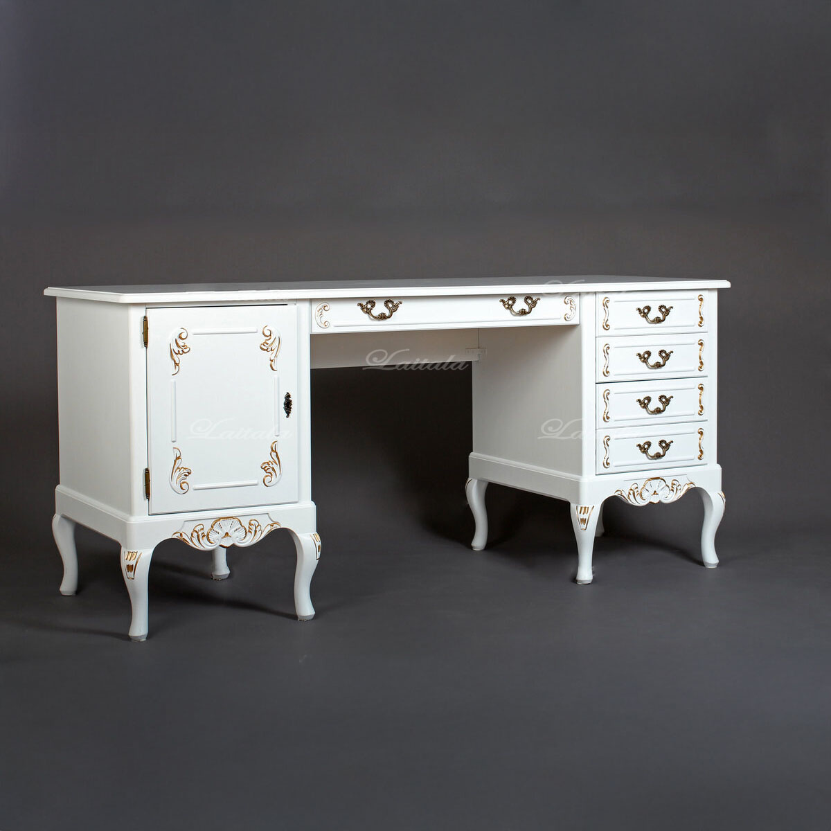 Talonpoikaisrokokootyylinen kirjoitus/työpöytä, jossa on säilytystilaa. Saatavilla useita värivaihtoehtoja.