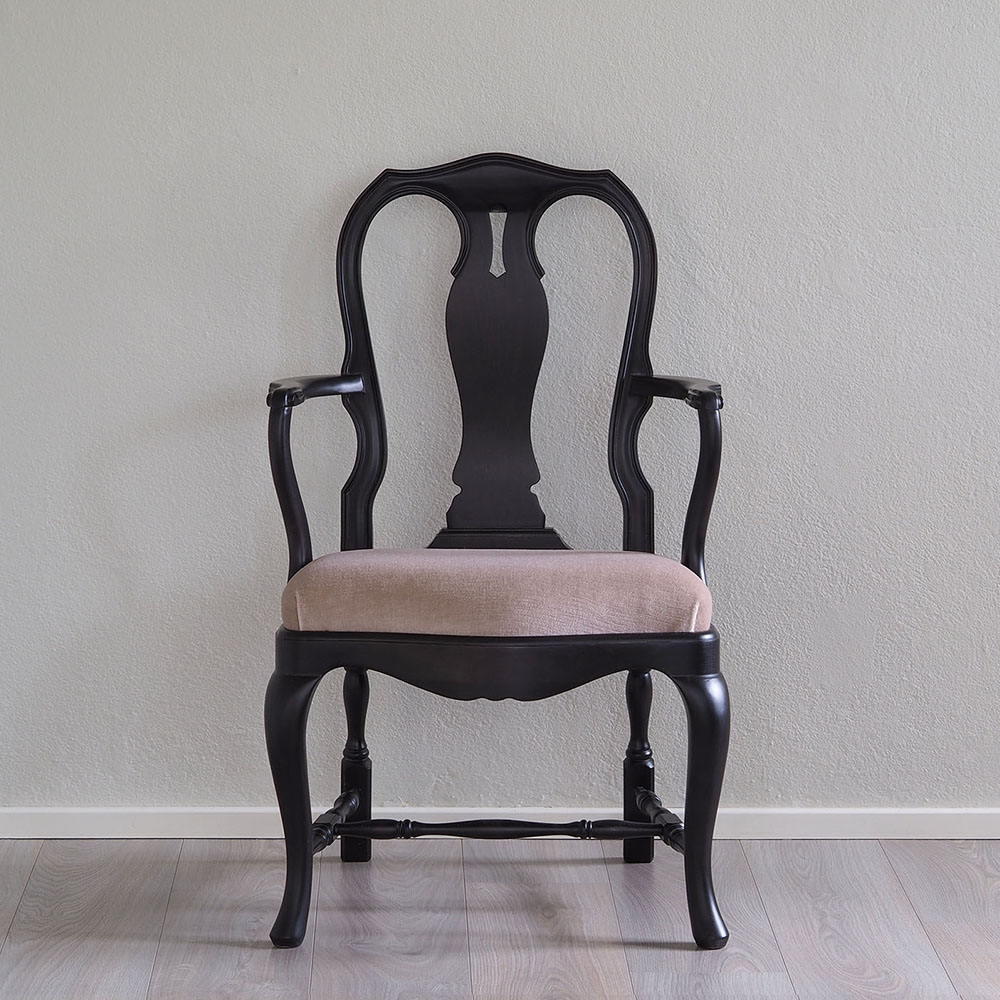Kirjoita ensimmäinen arvio tuotteelle “Talonpoikaisrokokoo nojatuoli, musta, valitse verhoilu”
