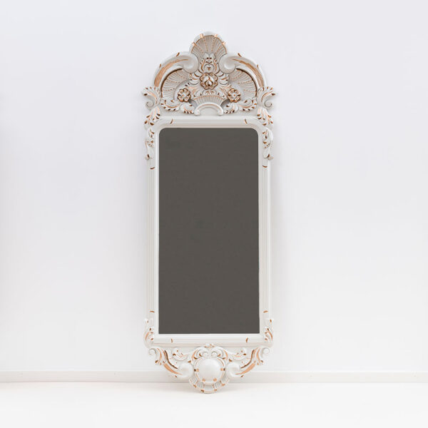 Jos tahdot tuoda huoneeseen valoisuutta ja avaruutta, sijoita seinälle suuri peili. Peili heijastaa valoa ja tuo siksi valoisuutta ja avaruutta tilaan johon se sijoitetaan. Valoa lisäävät peilit ja niiden runsas käyttö olivat aikanaan erottamaton osa rokokootyylistä sisustusta. Peiliä tarvitaan usein eteisessä tai pukeutumisessa, mutta voit huoletta käyttää sitä myös koristeellisena sisustuselementtinä ja valoisuuden voimistajana. Talonpoikaisrokokoo peili on kuin suuri koru.