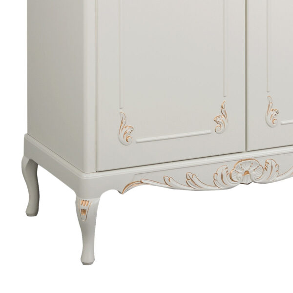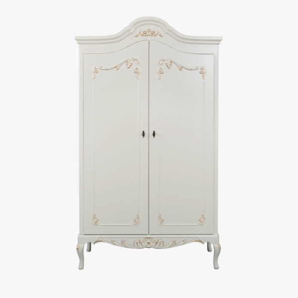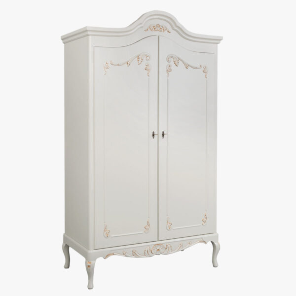 Talonpoikaisrokokoo vaatekaappi on lukollinen, joten halutessasi voit säilyttää rakkaimmat vaateaarteesi lukkojen takana, turvassa lemmikeiltä tai lasten leikeiltä.