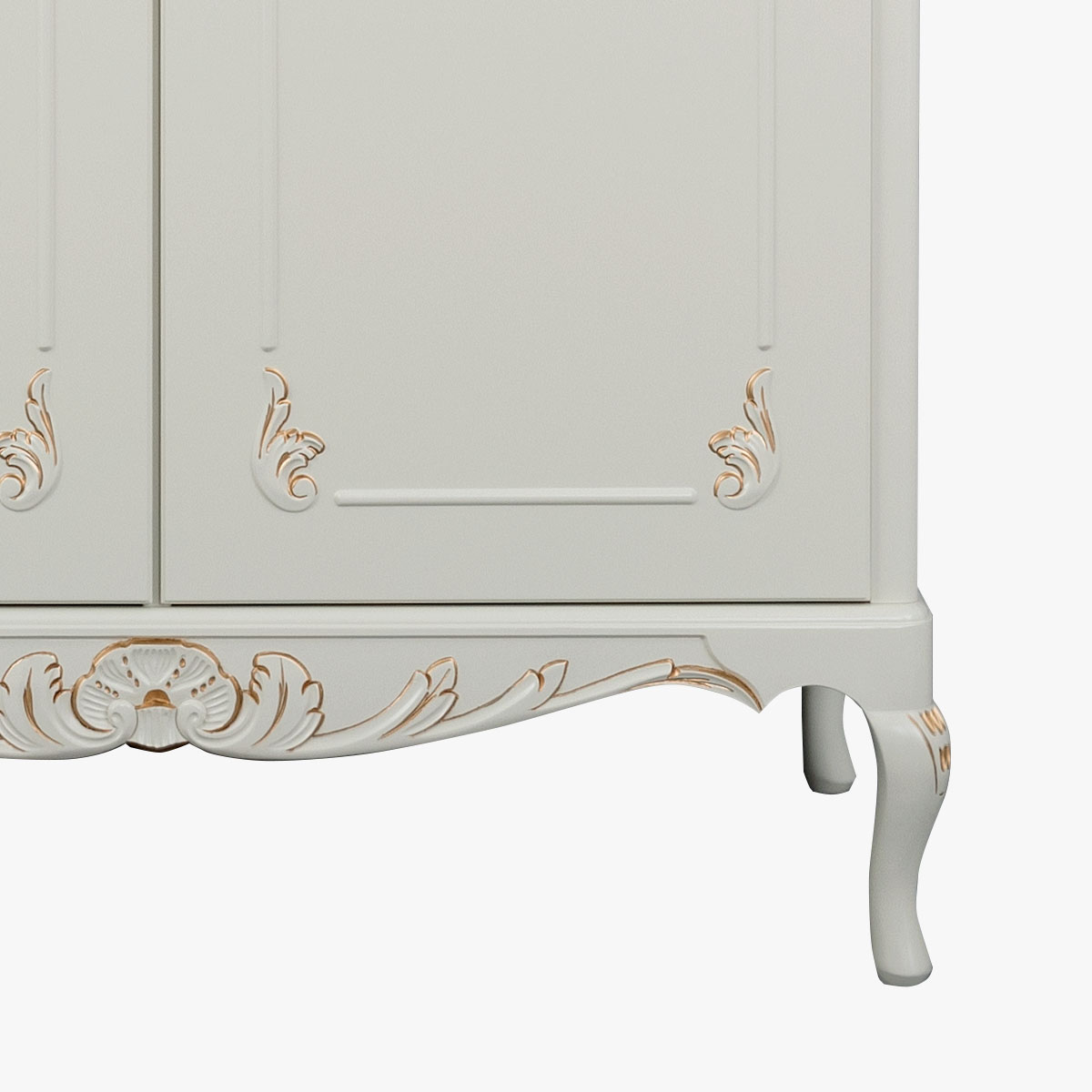 Talonpoikaisrokokoo vaatekaappi on lukollinen, joten halutessasi voit säilyttää rakkaimmat vaateaarteesi lukkojen takana, turvassa lemmikeiltä tai lasten leikeiltä.